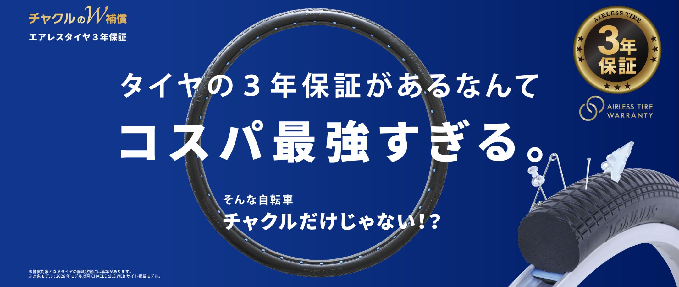安全・安心のエアレスタイヤ搭載自転車『CHACLE』を、あなたの生活に取り入れてみてはいかがでしょうか。