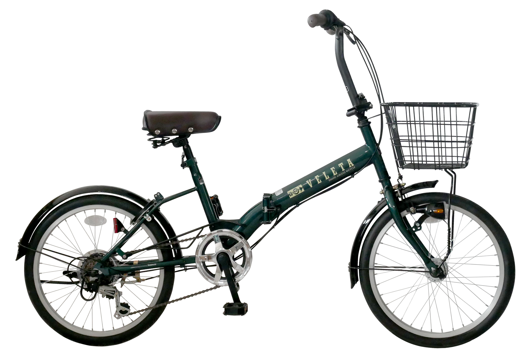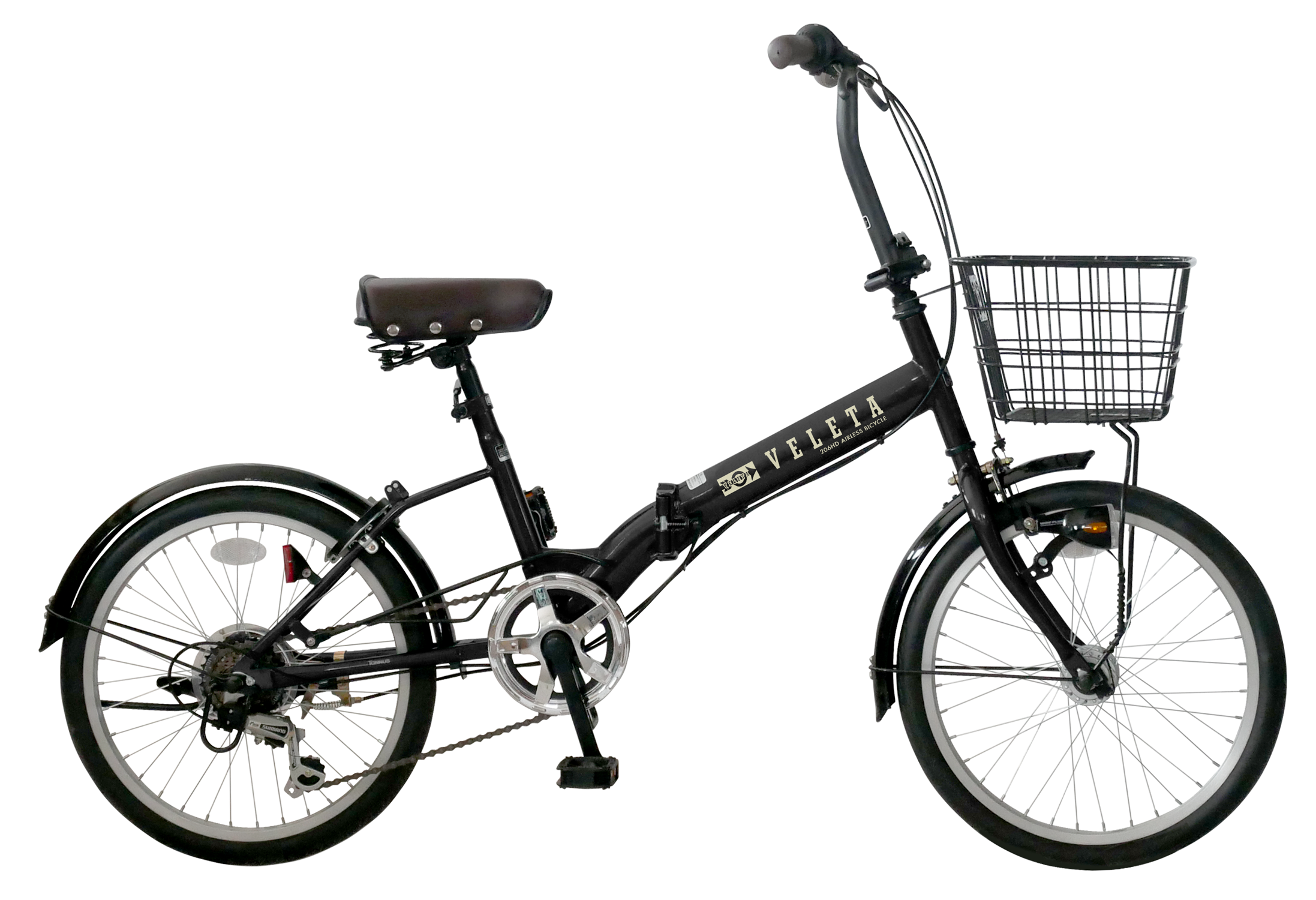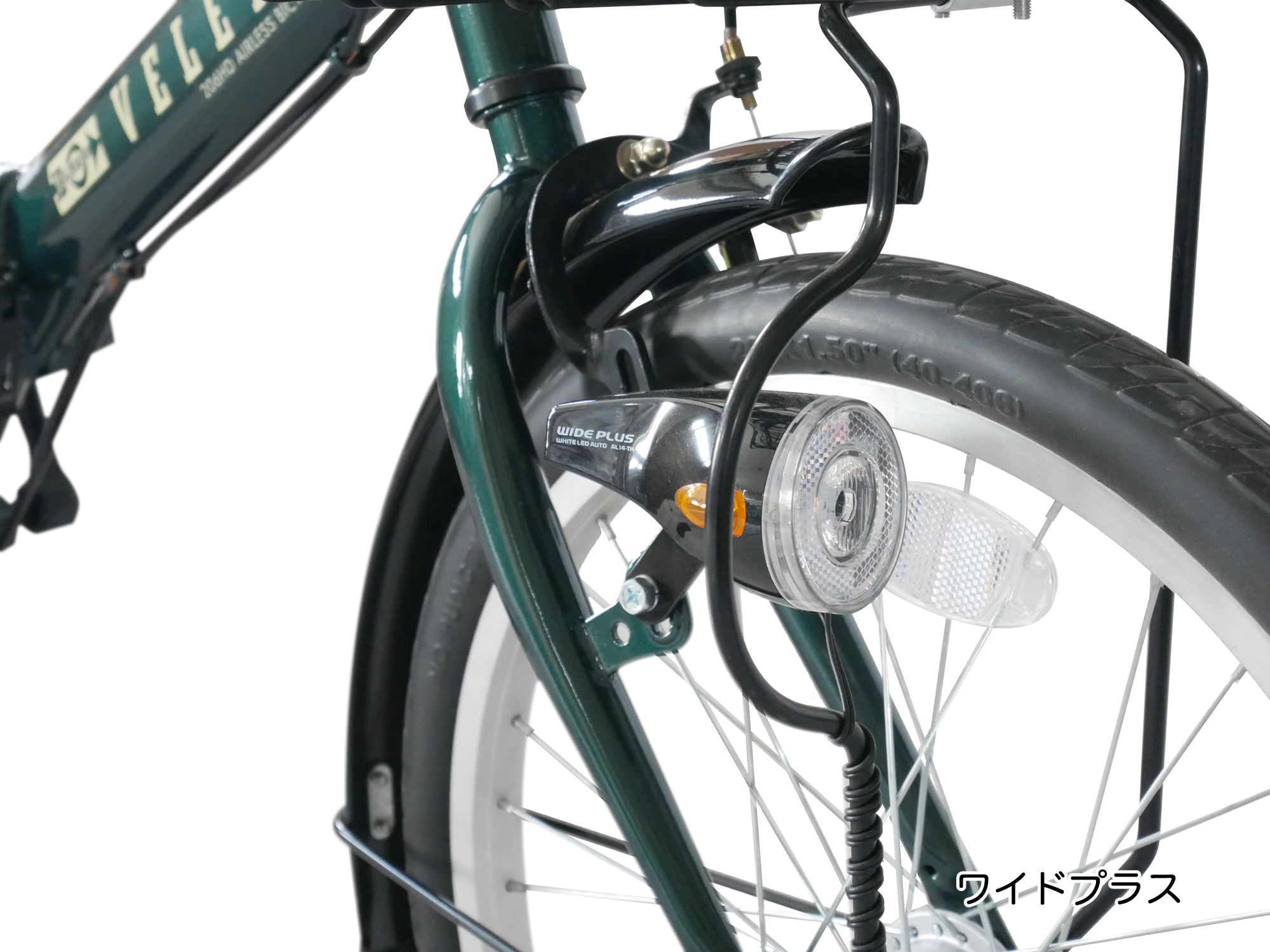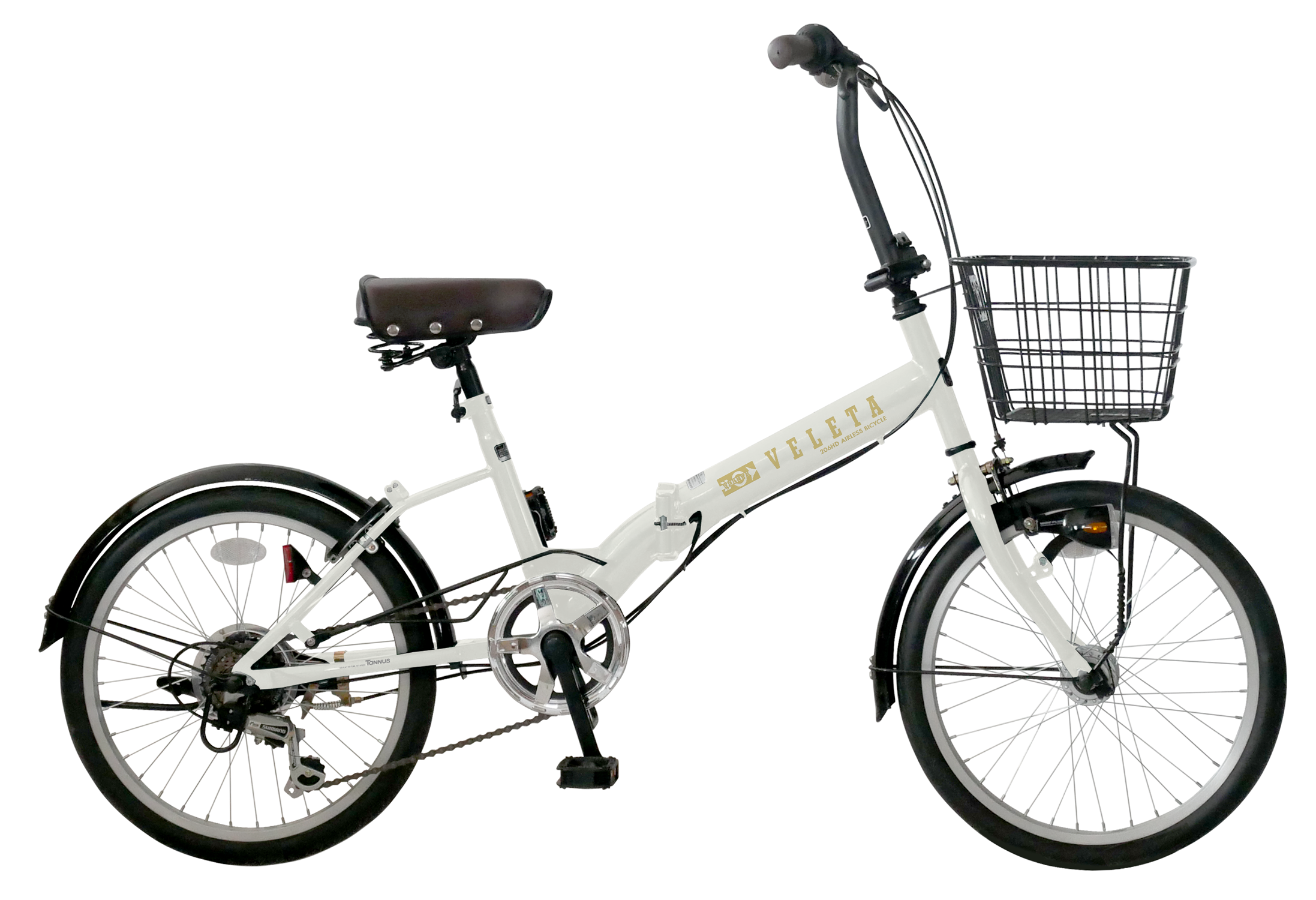 エアレスタイヤ装着の折りたたみ自転車。